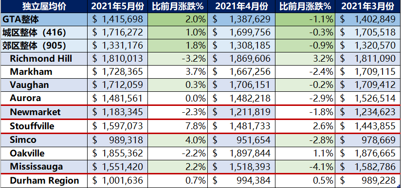 • 今年5月份GTA地区房屋均价突破了$110万,达$1,108,453;